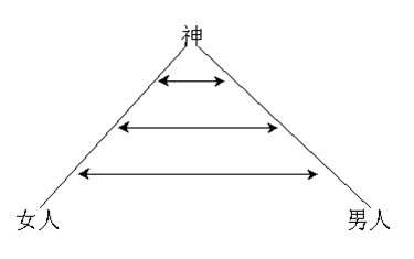 因此,我们可以将约会的过程,以上图来表示。它强调男女双方灵命的长进与发展──当一个人与神的关系越来越亲近──他们两人之间的距离也自然地拉近。