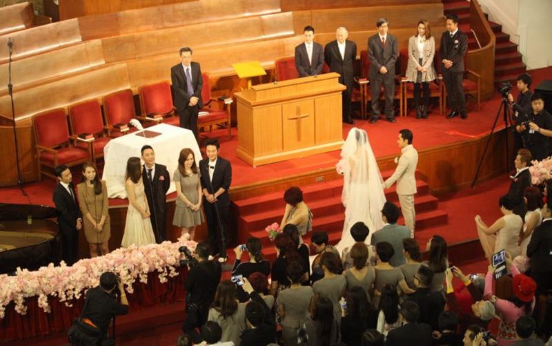 牧师为新人祈祷之后,由歌唱家杜丽莎为新人献唱《Because of who you are》,郭晋安夫妇宣读《圣经》经文,为新人送上祝福和寄望。礼堂内大约有200名宾客,王祖蓝甚至安排了大摇臂从不同角度拍摄婚礼情况,希望记录下这人生中最重要的时刻。
