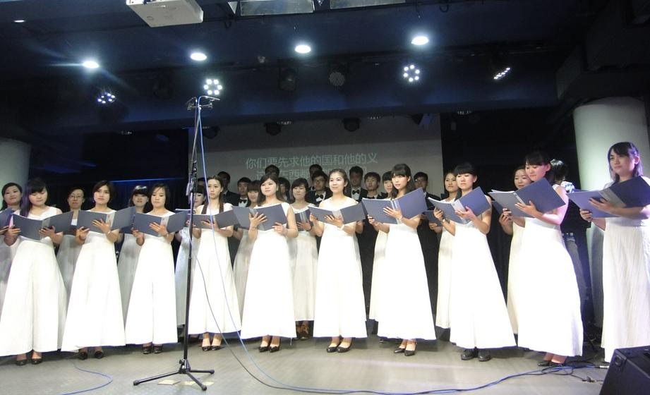 接下来由学校师生组成的迦南合唱团给观众带来了三首大合唱《你们要先求神的国神的义》、《如鹿切慕溪水》及《这是耶和华所定的日子》。在演绎这三首基督徒都非常熟悉的圣诗时,合唱团使用了国内不多见的伴奏方式,加之以多个声部的合唱方式,让三首赞美诗一气呵成,在场观众感动连连,。