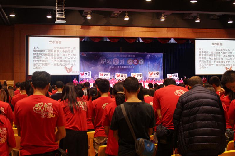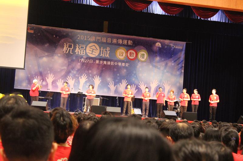 今年7月27-8月2日是第十届澳门福音遍传运动,27日晚的启动礼在浸会中学举办,由台湾天韵合唱团作为外来协助队伍之一助阵演唱。澳门宣道堂和各个分堂、以及其他外来嘉宾共上千人出席,他们愿意在这段期间按照宣誓内容出动传福音,祝福澳门全城。