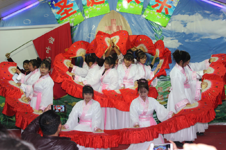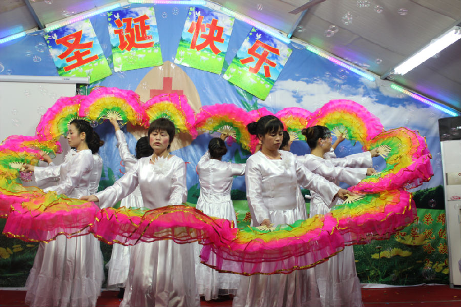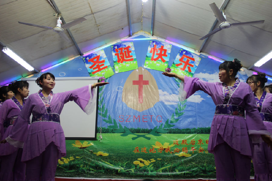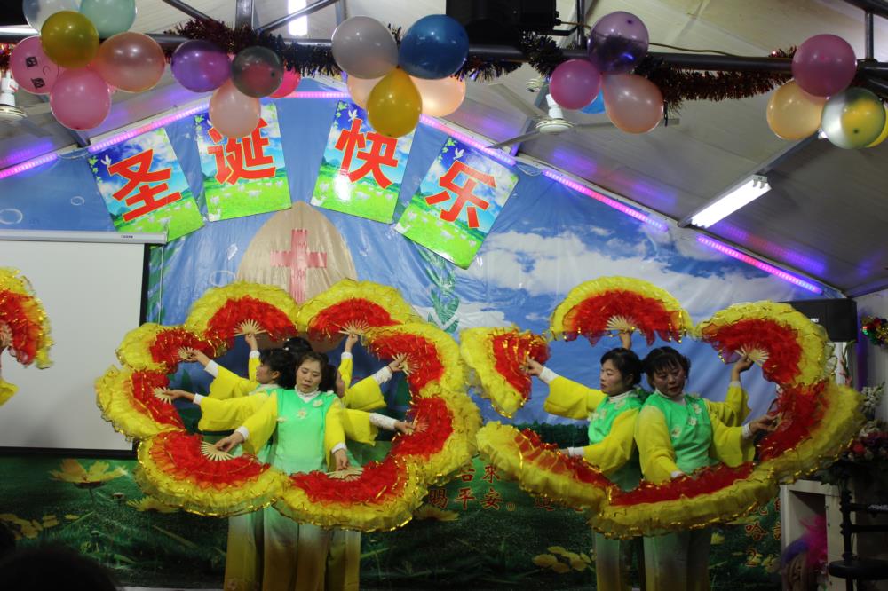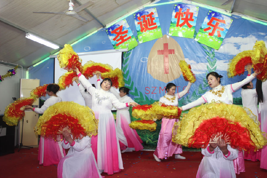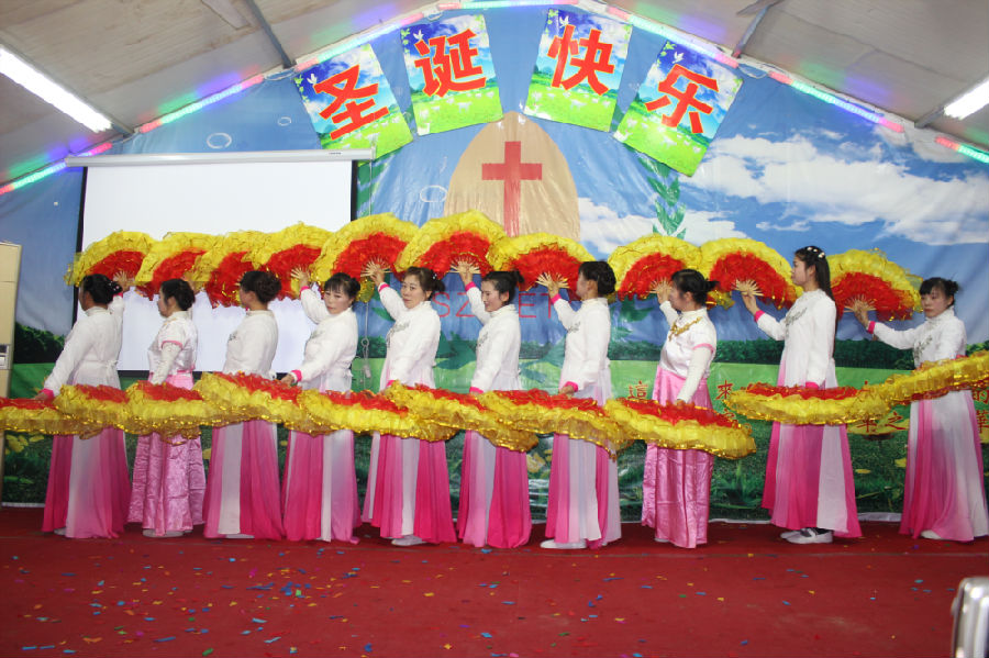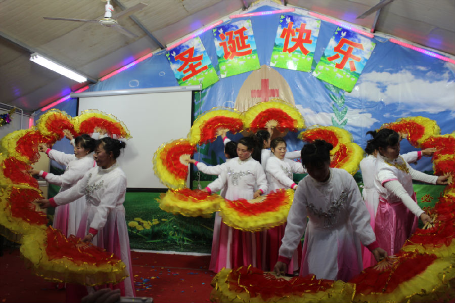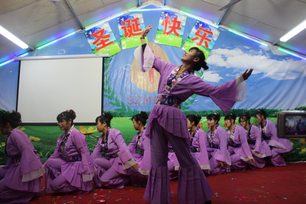 十多个节目下来,最多的就是舞蹈,舞蹈中最多的就是扇子舞,这曾经也是农村教会圣诞晚会中最普遍的节目之一。如今,虽然他们迁徙到城市之中来打工,但反而信仰和文化仍旧保留下来,更让人觉得弥足珍贵。