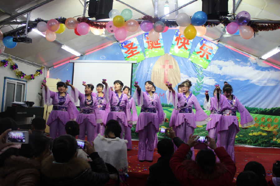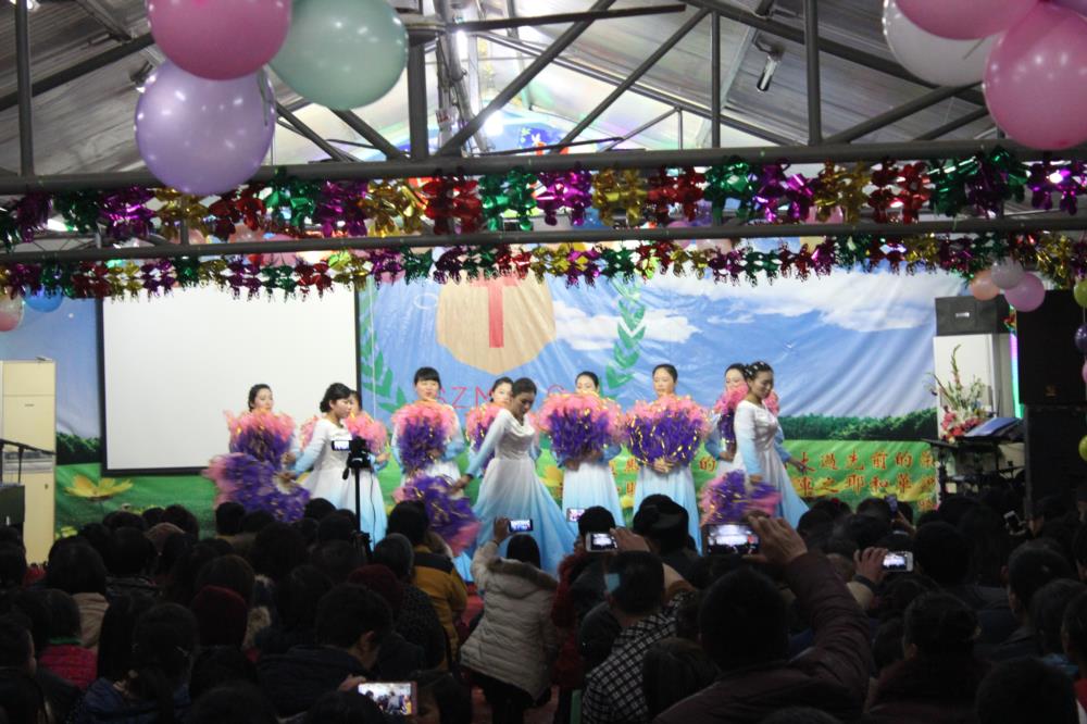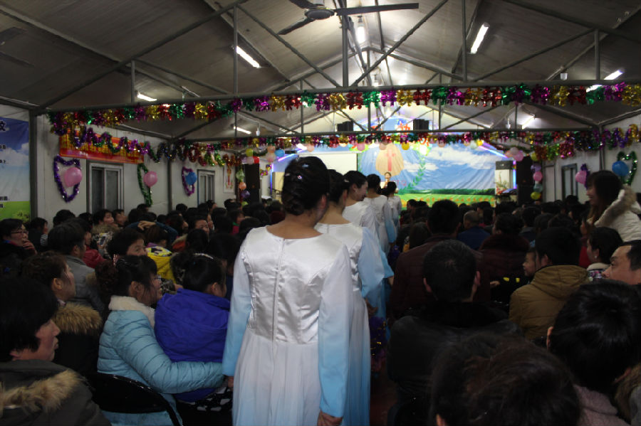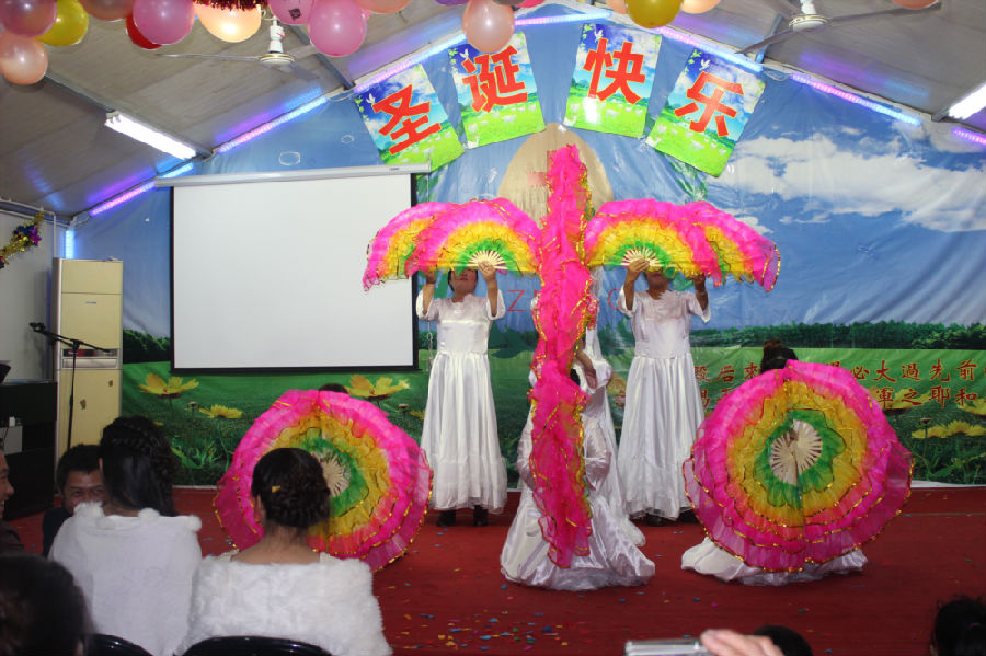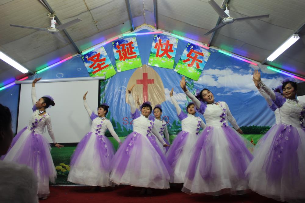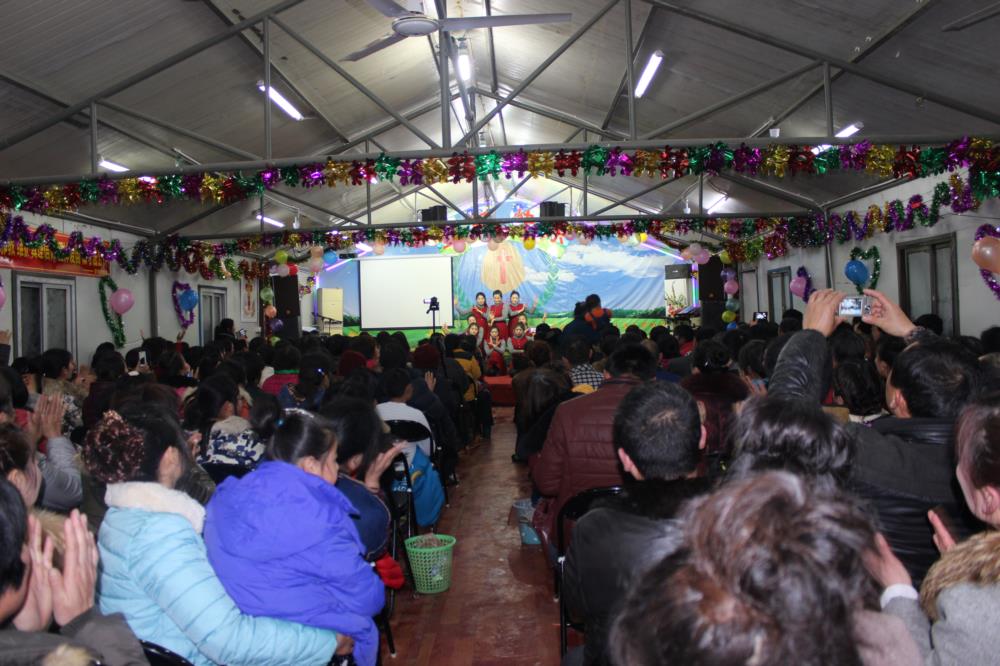 这就是昨晚在江苏一个二级城市的城乡结合带的民工教会们每年最热闹的节目:圣诞平安夜的晚会,其喜庆和隆重度与我们国人所熟悉的“春晚”一般。