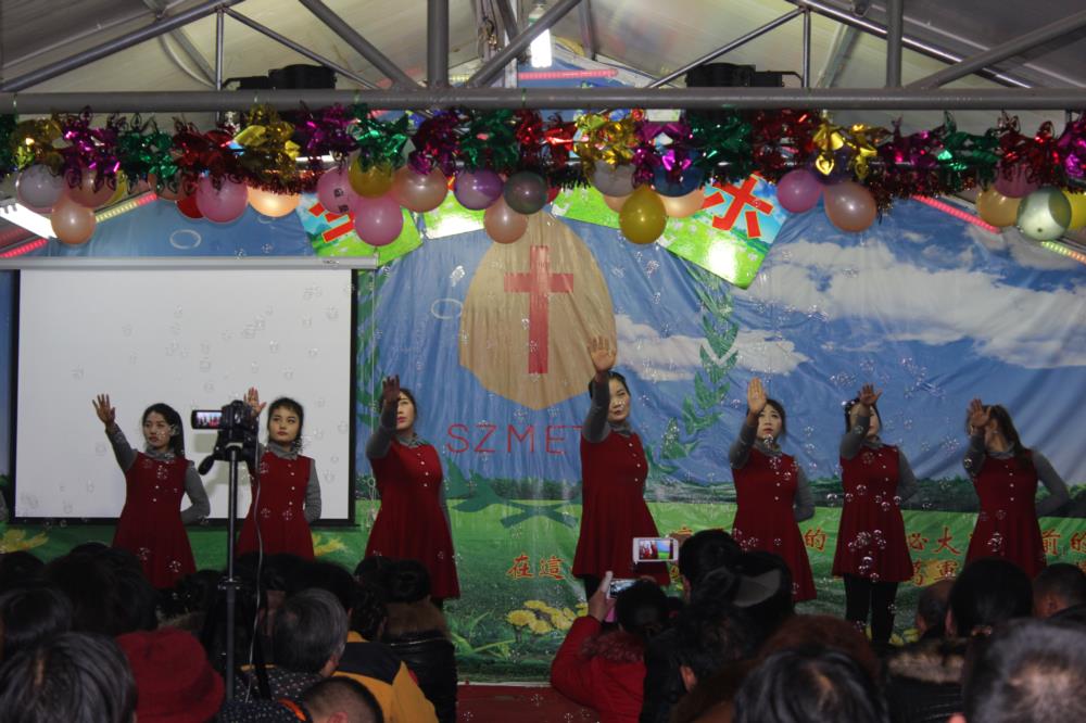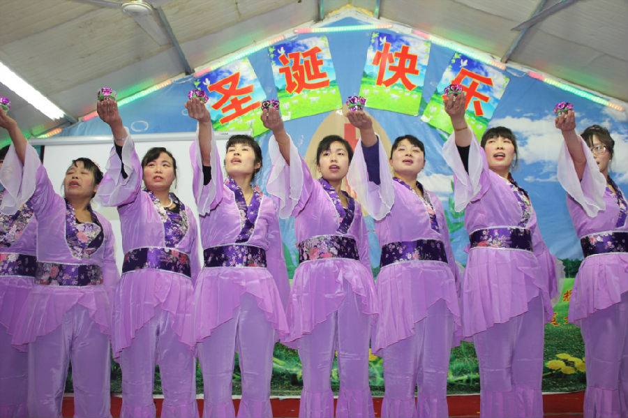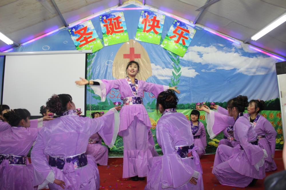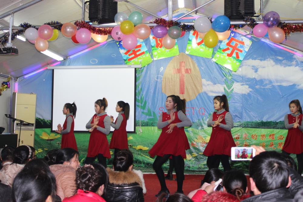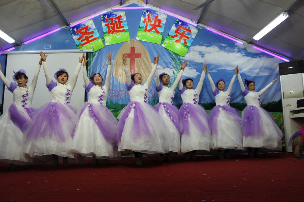这就是昨晚在江苏一个二级城市的城乡结合带的民工教会们每年最热闹的节目:圣诞平安夜的晚会,其喜庆和隆重度与我们国人所熟悉的“春晚”一般。
