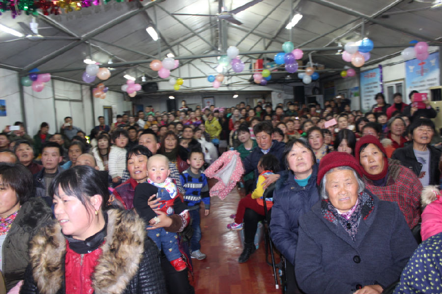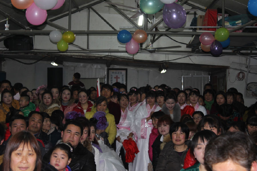 圣诞平安夜,江南下起绵绵阴雨,白天的雾霾却仍旧让一切景象处在影影绰绰之中,就在这样的阴暗潮湿之中,踩过一条大约长400米的泥泞小道,迎面一个废弃的厂房,穿门而入是一团温暖,洋溢在眼前的景象是一派祥和:男女老少四世同堂一般团聚,在这里一场民工基督徒自发开始的圣诞晚会就要开始。
