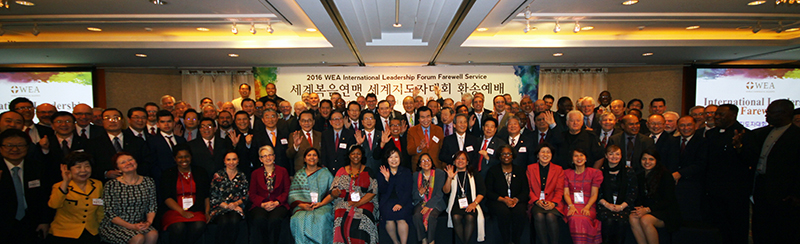 2月29日-3月4日,世界福音联盟(The World Evangelical Alliance,简称WEA)2016年国际领袖论坛于韩国首尔举行,来自40个国家的世界福音联盟地区的领袖与一些国家代表共90多位领袖参出席了论坛,就当今普世教会面临的核心话题,以及如何进行跨地区、跨组织的合作进行了交流。韩国基督教总联合会(Christian Council of Korea,简称CCK)参与协办此大会,数百位领袖亦出席了论坛。