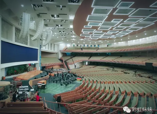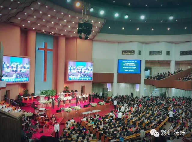 爱的教会外景与内景,韩国目前规模最大的教会,可以同时容纳6500人。