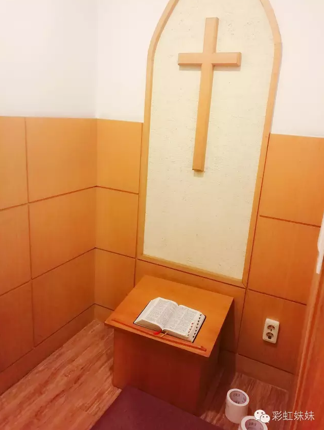 一间一间是个人的祷告室(圣经、垫子、纸巾、插座,好贴心的预备)