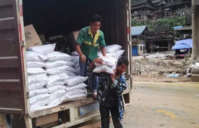 这两天,爱德基金救援队在黎平受灾最严重的九潮镇,向损失严重的受灾群众发放大米。本次救援将发放72吨大米,计划发放给1200户受灾群众(每户约4人,每人30斤),以应对接下来一个月的生活需求。救援队员已经完成民罗村与罗伍村两个受灾村群众的粮食发放工作。