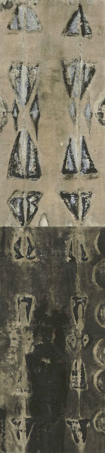 而论到岛子此次最新的作品之一《圣迹》,它在艺术上重现了都灵裹尸布。对此,郝青松评论说:”《圣迹》所述都灵裹尸布,乃藏于意大利都灵的耶稣殉难遗迹,被认为可能是耶稣被钉死在十字架后所用的裹尸布,印有耶稣脸部面容及全身正反两面痕迹。这不仅是耶稣殉难的见证,更是‘道成肉身’的见证,是基督信仰的纪念碑。如今,祂通过岛子的‘圣水墨’创作来到中国,画中带来的生命与救赎观念相对于中国来说都是特别启示的世界观,观念的更新也必然带来艺术更新。”