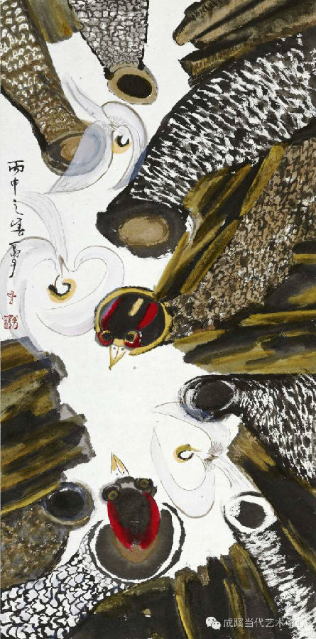 黑天鹅 纸本水墨设色 92x92cm 2016