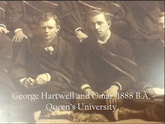 乔治·哈特维尔与启尔德(右)1888年获得文学学士时,在女王大学所摄。