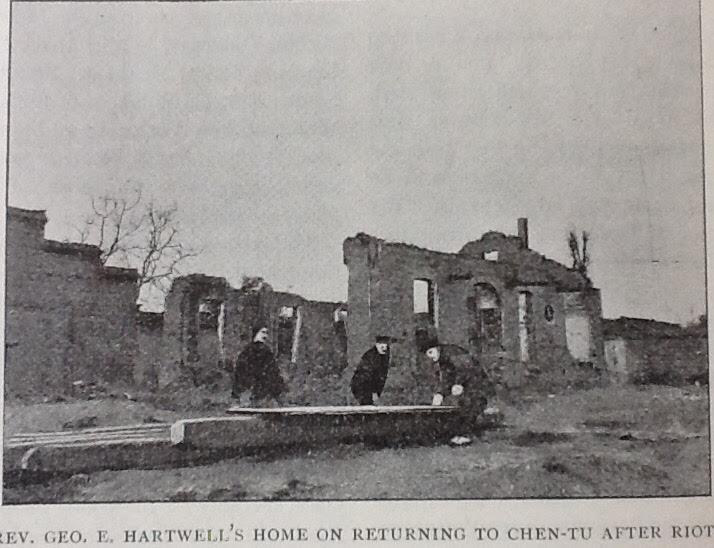 成都教案后,哈特维尔回到暴乱中被毁的家,已成废墟