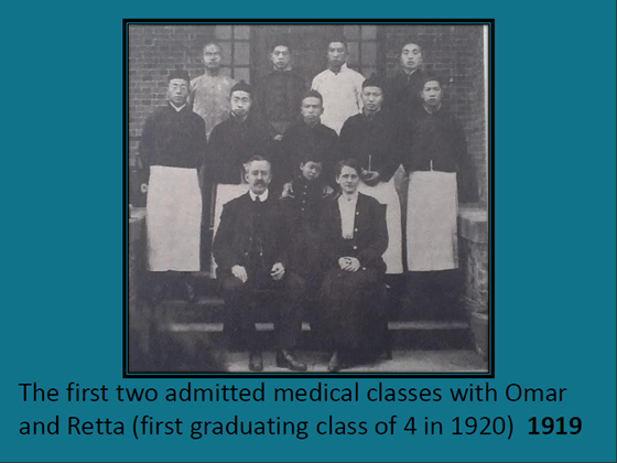 医院建成后,启尔德终于可以在大学创建医学院了。他将西医带到中国的目标已经到了最后的时刻,培养中国医生。最开始,医学院只招到9名中国学生(跟好奇学校一样),到1920年(原文为1918年,与照片不符,经查证更改为1920年),只有其中4个顺利毕业。启尔德夫妇是医学院的第一批老师。