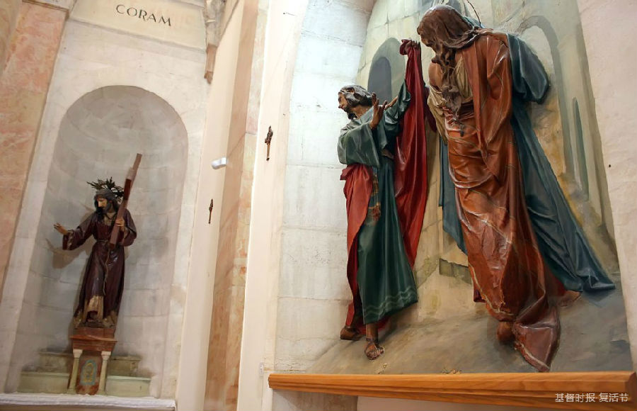 不过,耶稣的死亡和埋葬不是结束。三天后,耶稣就是在这里复活,再次显现在他的门徒面前。圣墓大殿的三幅绘画回顾了这个过程: