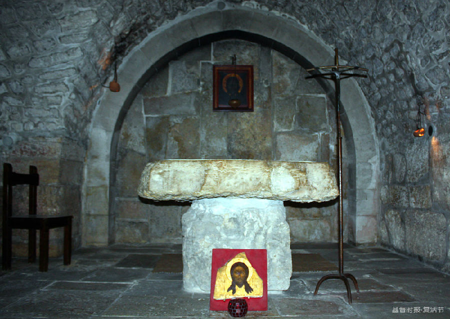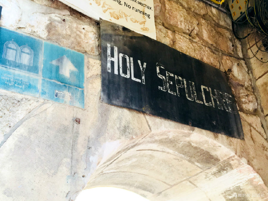 在曾经耶稣被短暂安葬的地方,也就是今天圣墓大殿里面再建了一个小教堂来纪念,入口处非常小,只可以允许一个人弯腰进入,里面的空间也尽可以容纳几人,这里每天都有成千上万的人排队进去,希望一睹当年耶稣安葬时躺在上面的大理石。