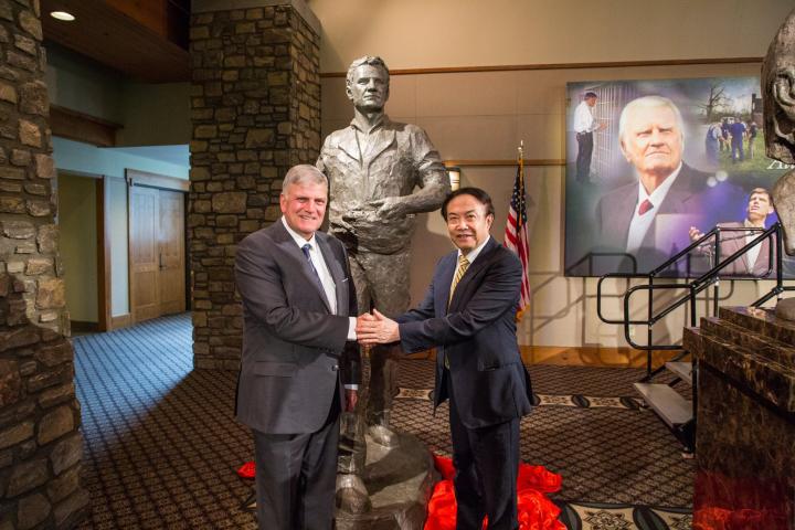 9月28日下午,两座纪念已故世界著名布道家葛培理的雕像揭幕仪式在位于北卡州夏洛特市的葛培理布道团总部举行。
