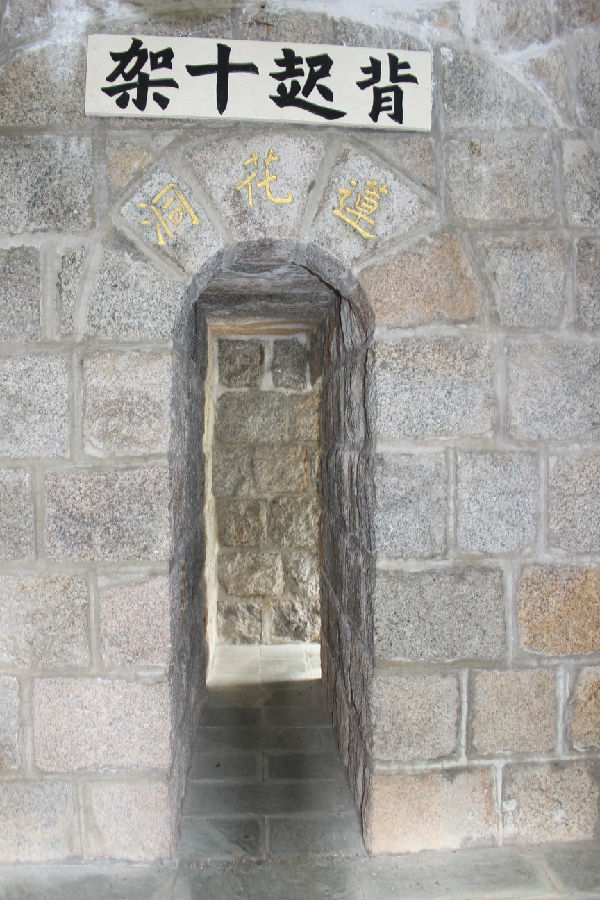 离开莲花洞,笔者和同行人在主建筑群外围走进了树林中。从山坡下有一条石头窄路,共一百步,可走入只供一个人大小进入的“生命门“,窄门两旁写有”宽路行人多并无真乐 窄门进者少内有永生“。而进入”生命门“后,抬头发现横批为”博爱“,题字的人是”孙文“(孙中山),两旁写有”你们往普天下去 传福音给万民听“。院内有中式风格的凉亭”感恩亭“,亭子旁边有立有道风山十字架。这个高四十尺的巨型十字架是全港最大的十字架,上面刻着”成了“,在此高处可俯瞰沙田市中心,也可在此默想主的十字架。旁边有一块大石镌刻着”活在主内“,仿佛提醒着路人要在生活中常常与主同行。
