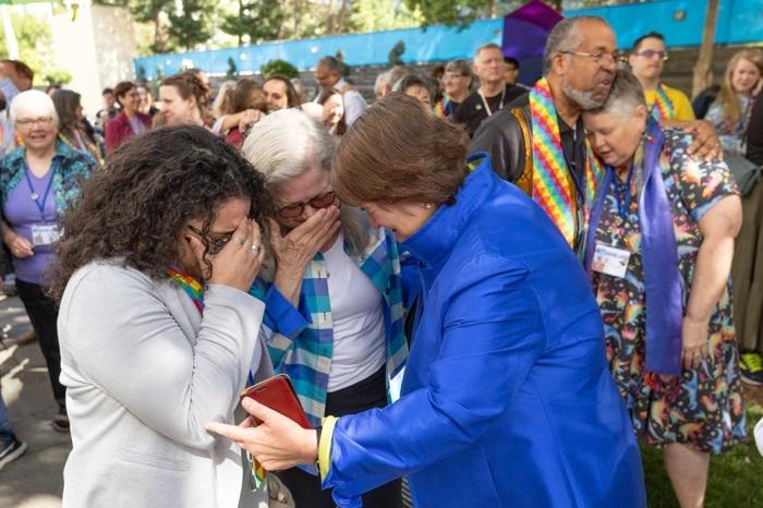 投票结束后,与会代表们致以热烈的掌声,长期支持删除相关言论的退休主教霍普·摩根·瓦尔德(Hope Morgan Ward)带领众人做了祷告。