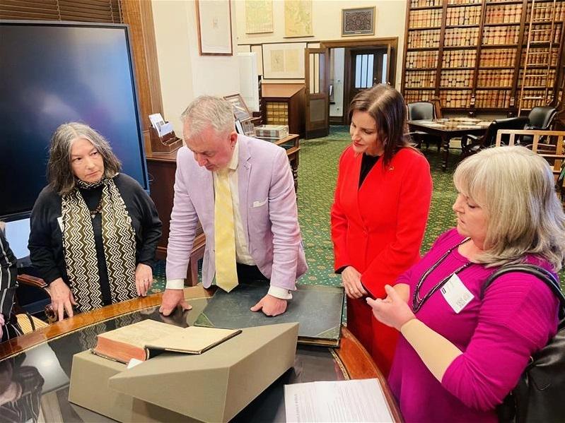 于是,斯特拉希恩提到了这部乔治·菲夫·安加斯的1726年圣经,引起了政治家的兴趣,后者还主动提出组织一次红十字会与南澳洲议会图书馆及其历史学家约翰·韦斯特(Dr.John Weste)就这本圣经的会议。